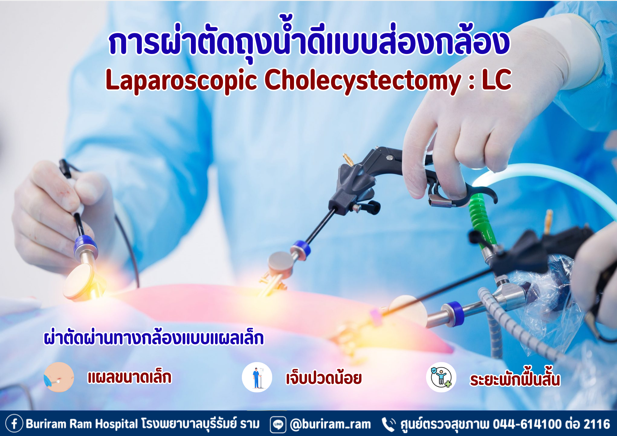 ผ่าตัดถุงน้ำดีแบบส่องกล้อง การผ่าตัดส่องกล้องนิ่วในถุงน้ำดี (Laparoscopic cholecystectomy) คือ การรักษาโรคนิ่วในถุงน้ำดีด้วยวิธีการผ่าตัดส่องกล้องผ่านช่องท้องแบบแผลเล็กเพื่อนำถุงน้ำดีและนิ่วออก สาเหตุที่ทำให้มีอาการปวดท้องรุนแรงใต้ชายโครงขวา ใช้เทคนิคการผ่าตัดแบบแผลเล็ก (Minimally invasive...